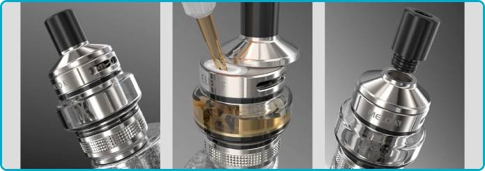 ☄️ On accède à l'orifice de remplissage via un top cap coulissant, plus de risque de le faire tomber, on peut faire le plein d'eliquide avec une seule main